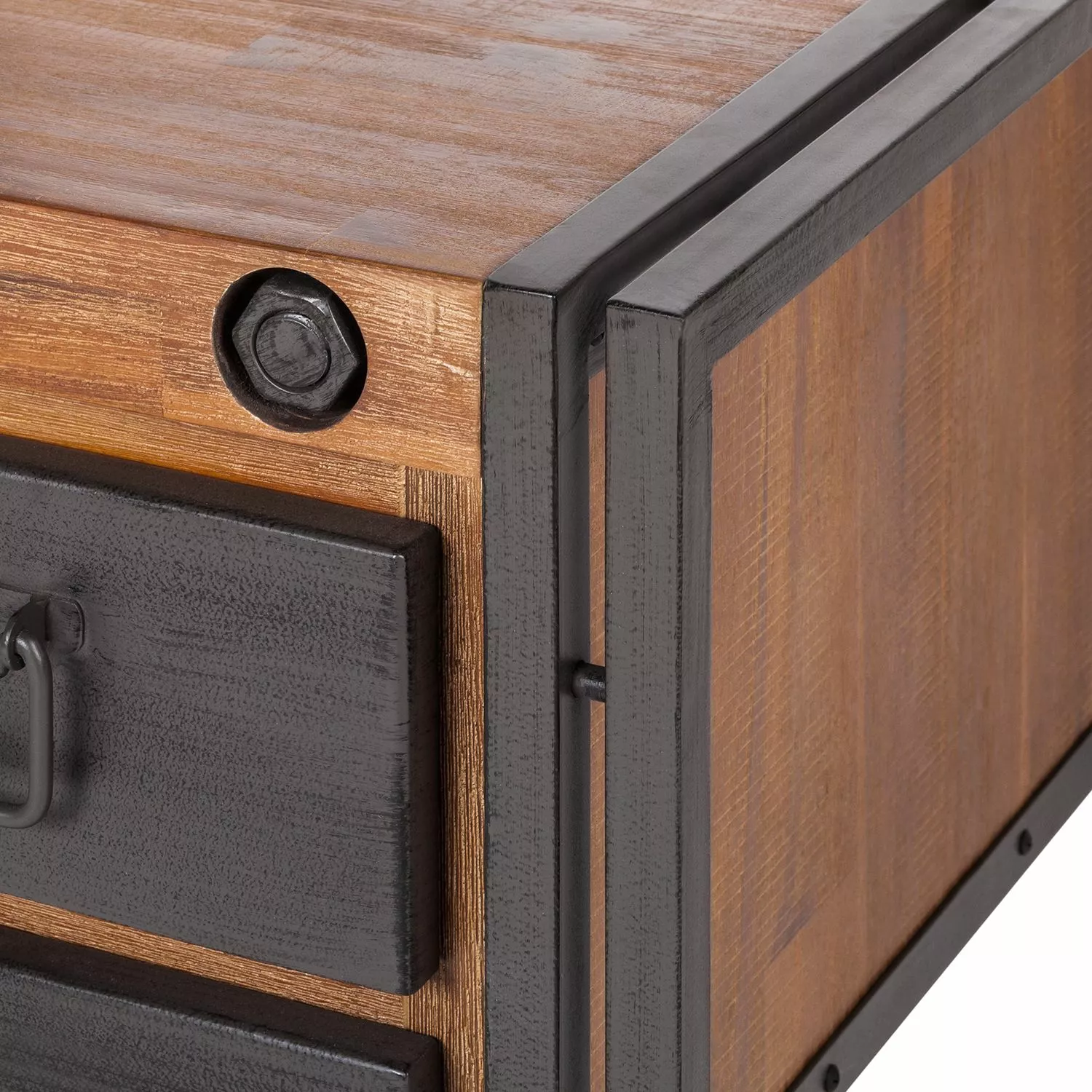 - Aufwendig gebürstete Holzoberfläche mit Vintageeffekt