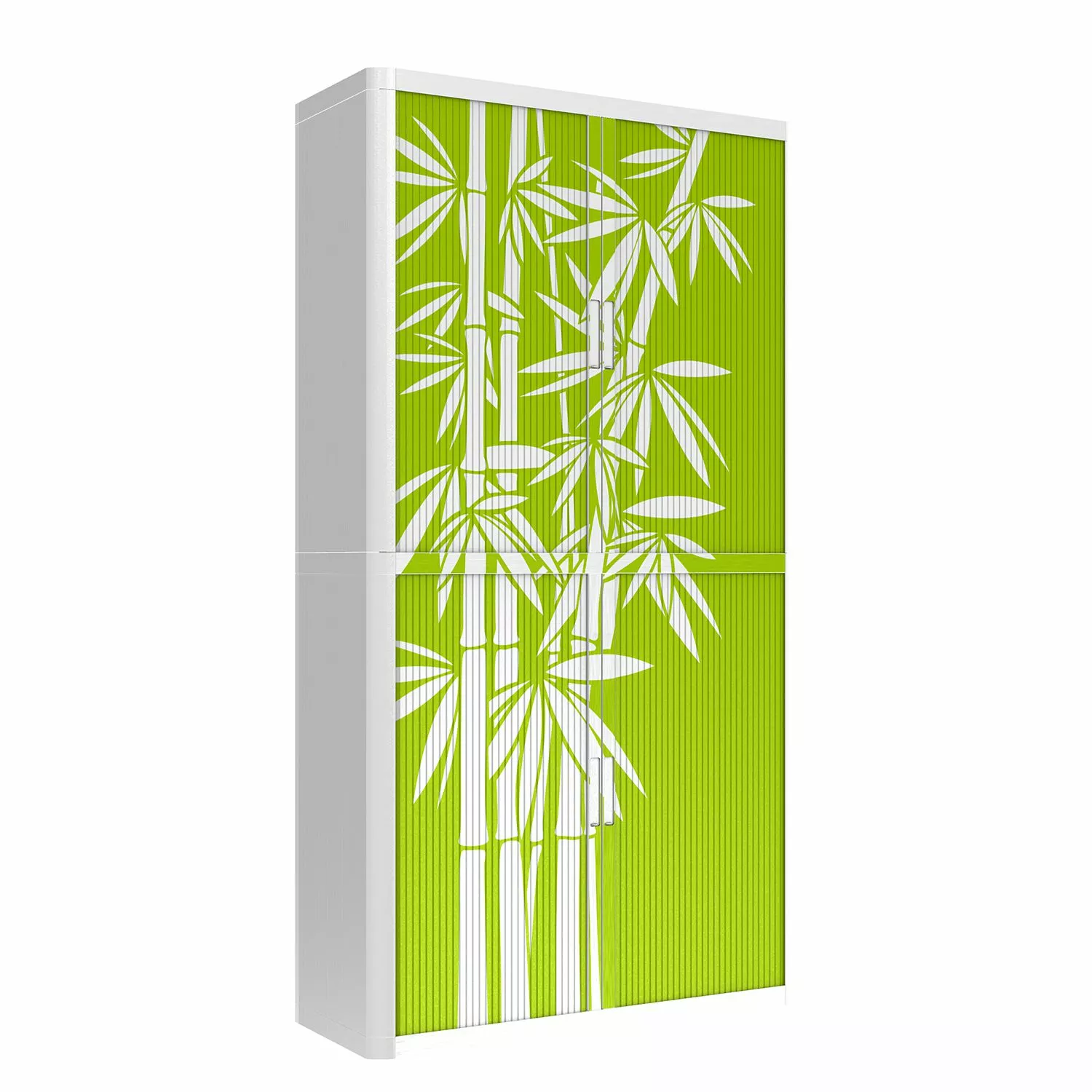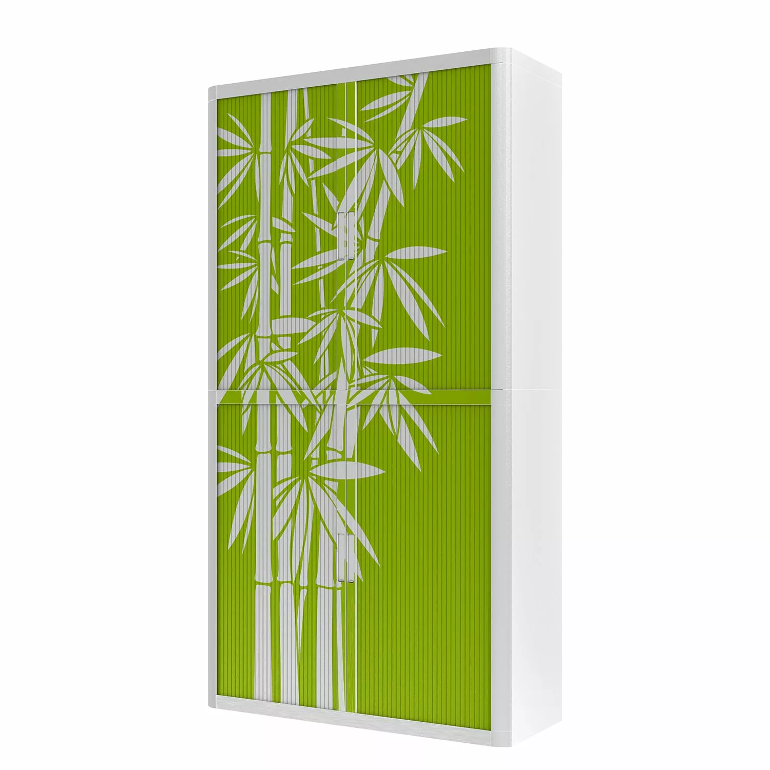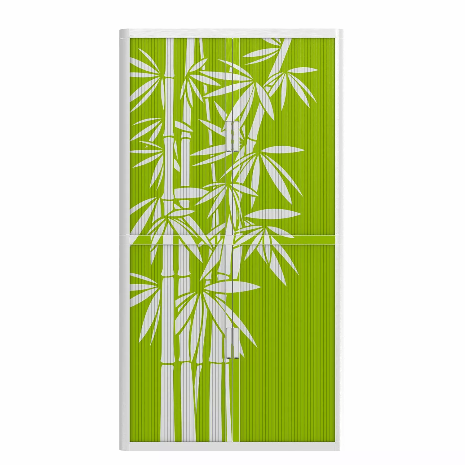- Klare, geradlinige Form mit hellgrüner Front & weißem Bambus-Motiv