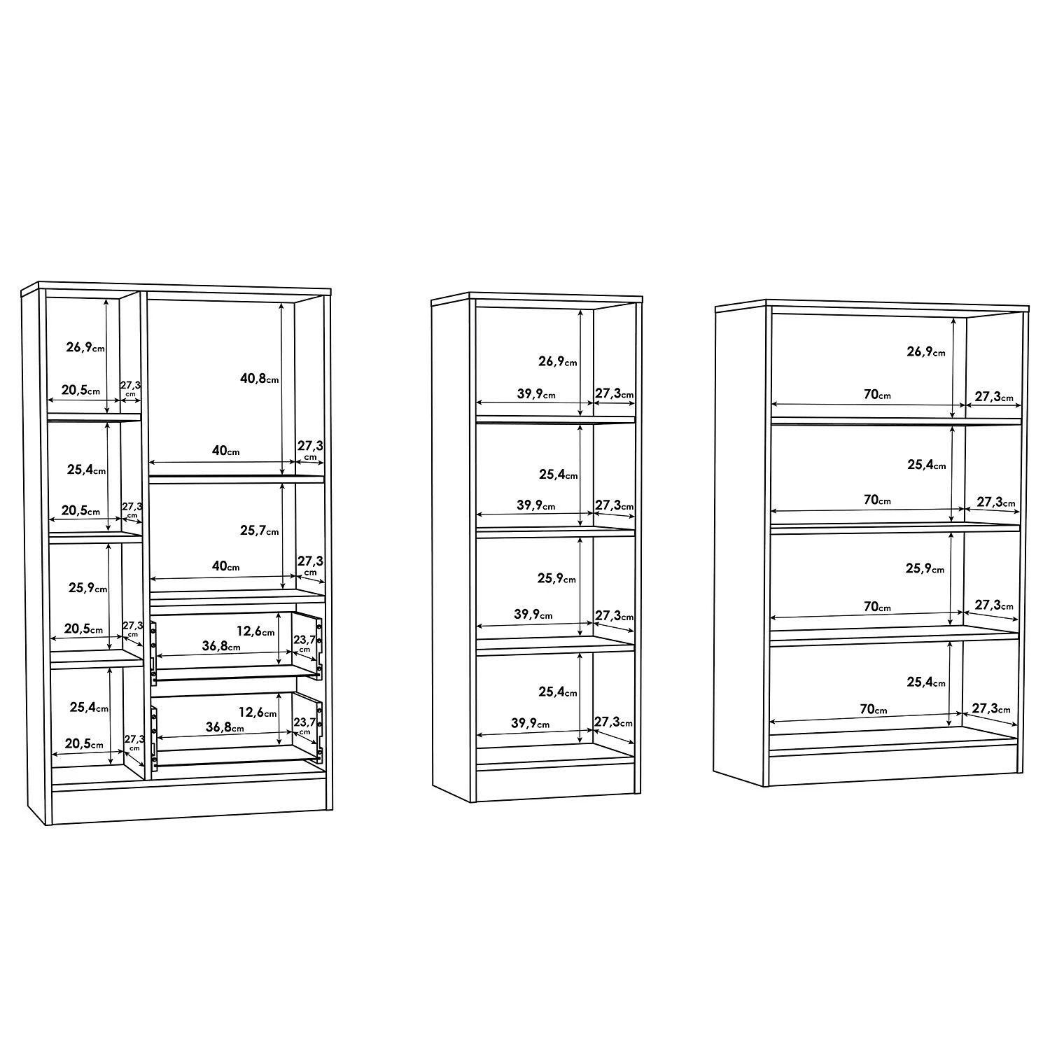 - Anzahl feste Fachböden: 3 Fachböden