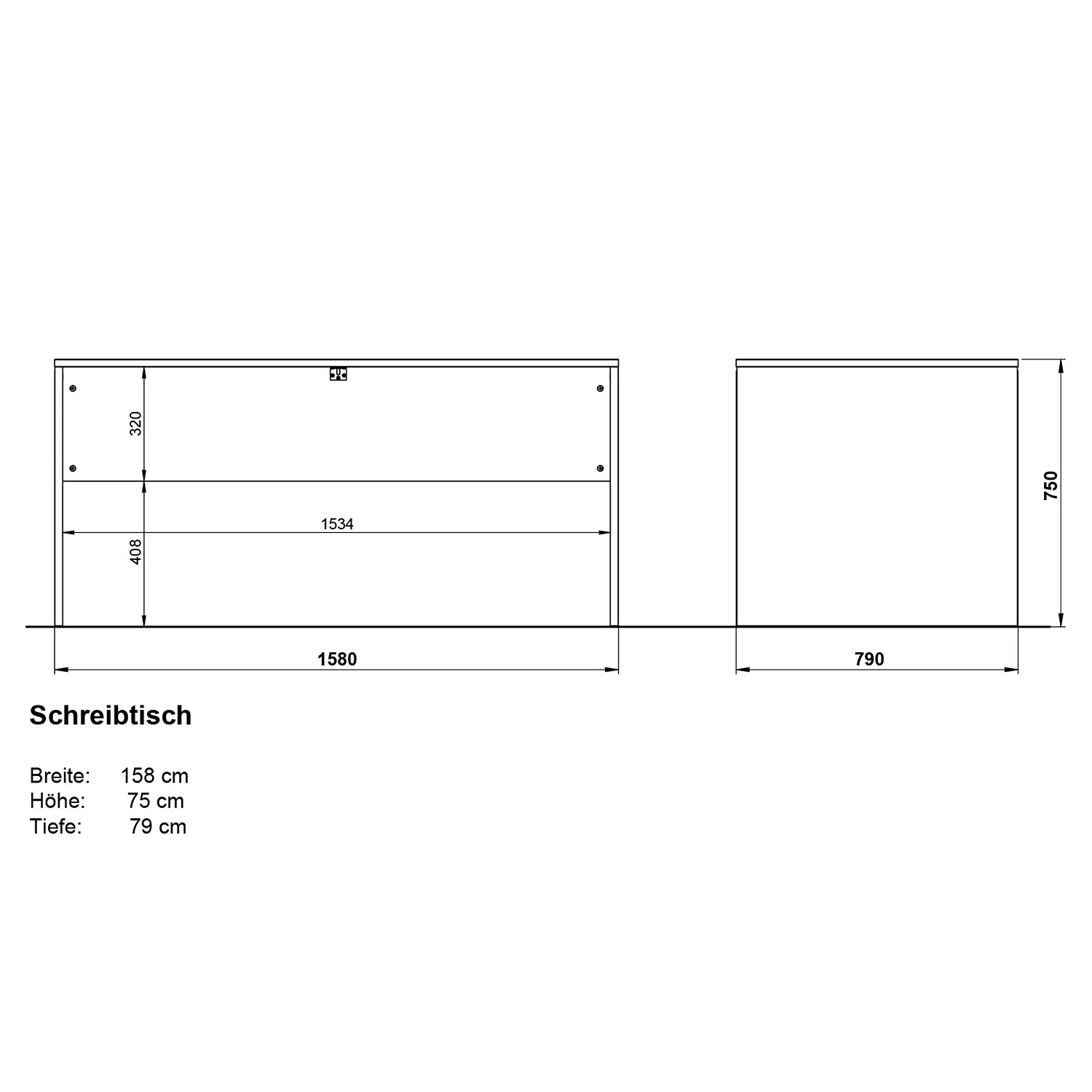 - Schreibtisch: 158 x 75 x 79 cm