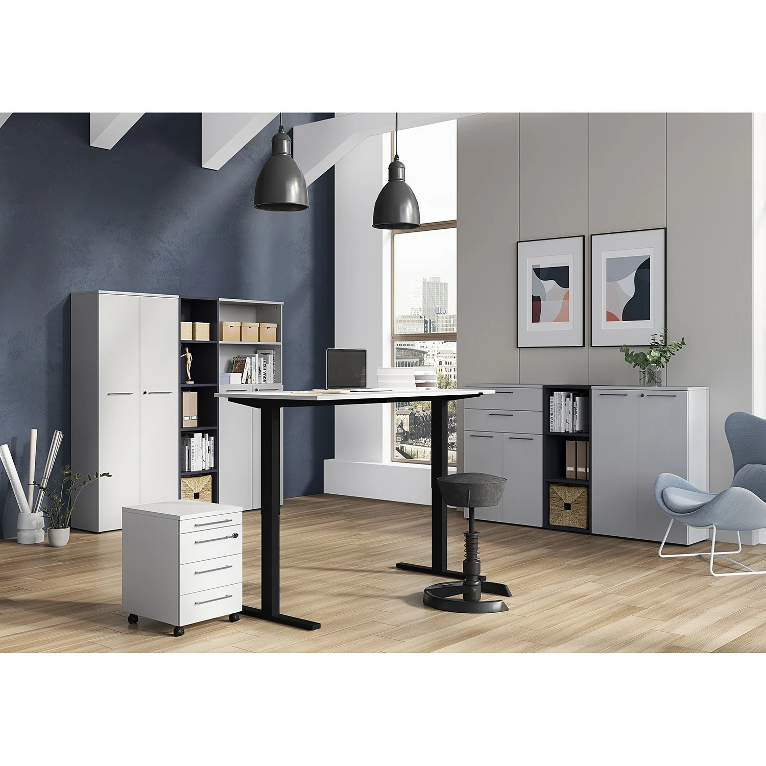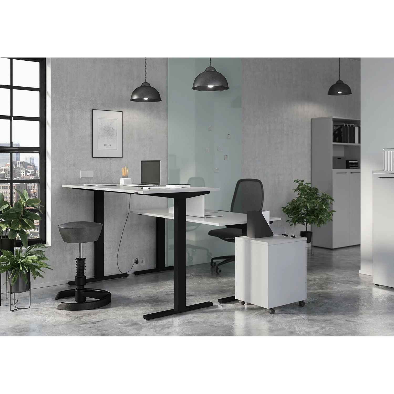 Germania Schreibtisch GW-Agenda II – (elektrisch höhenverstellbar) – Lichtgrau – Breite: 160 cm