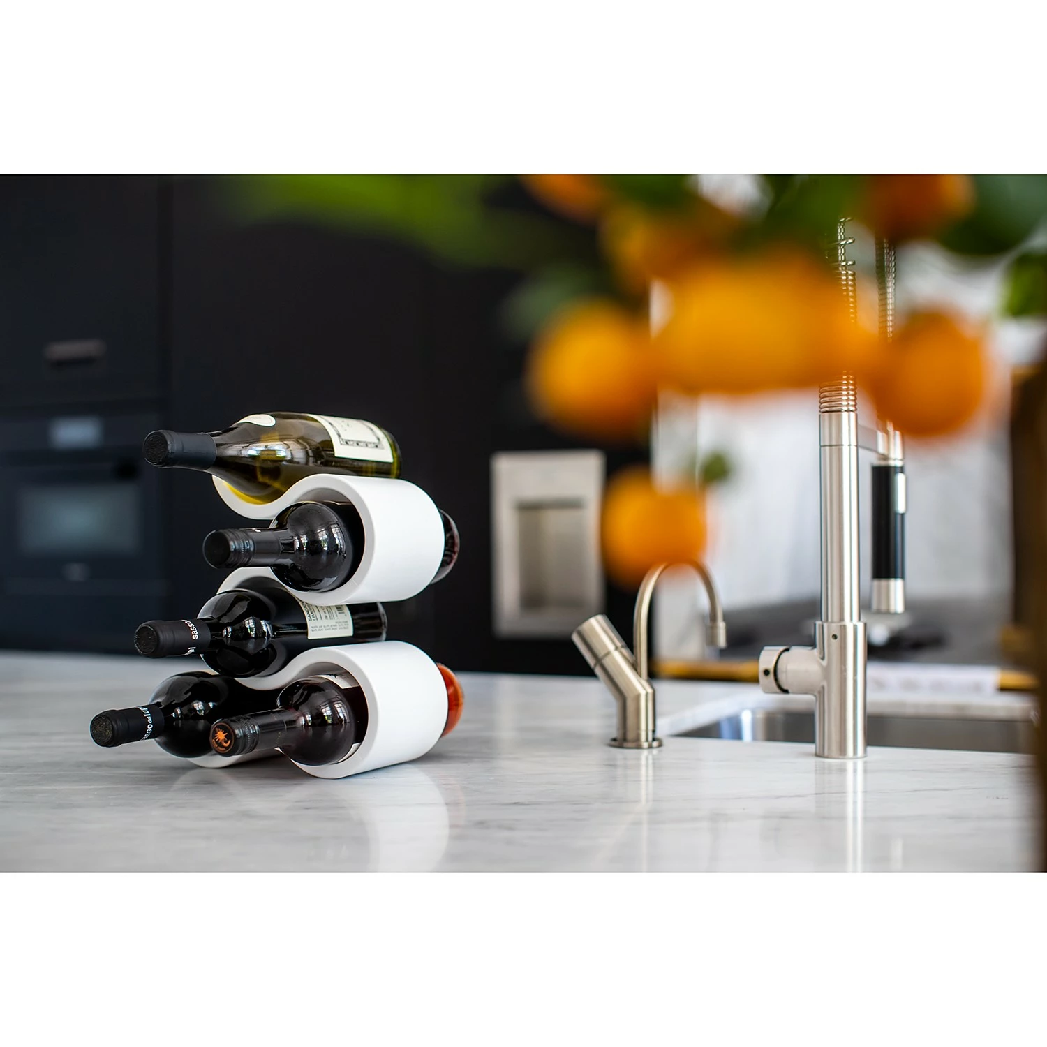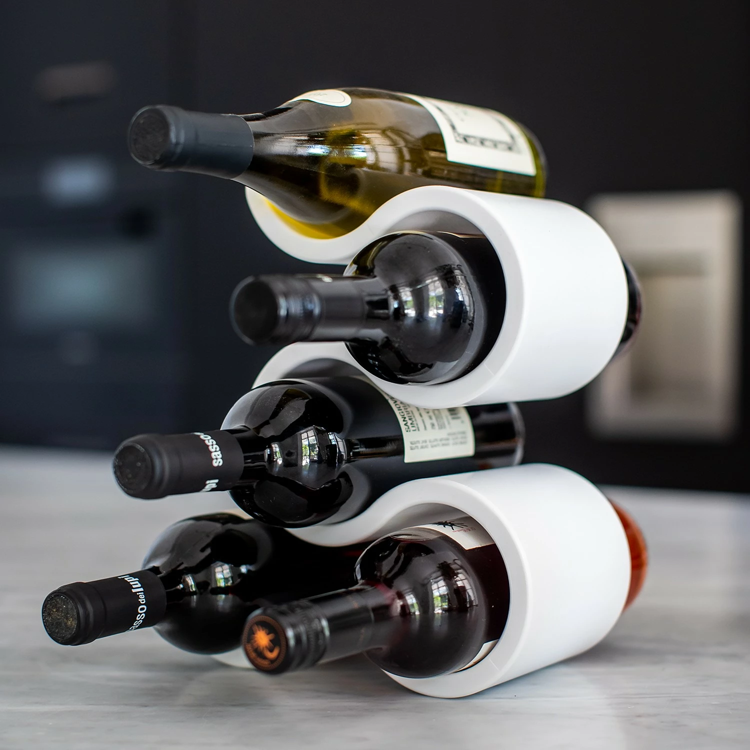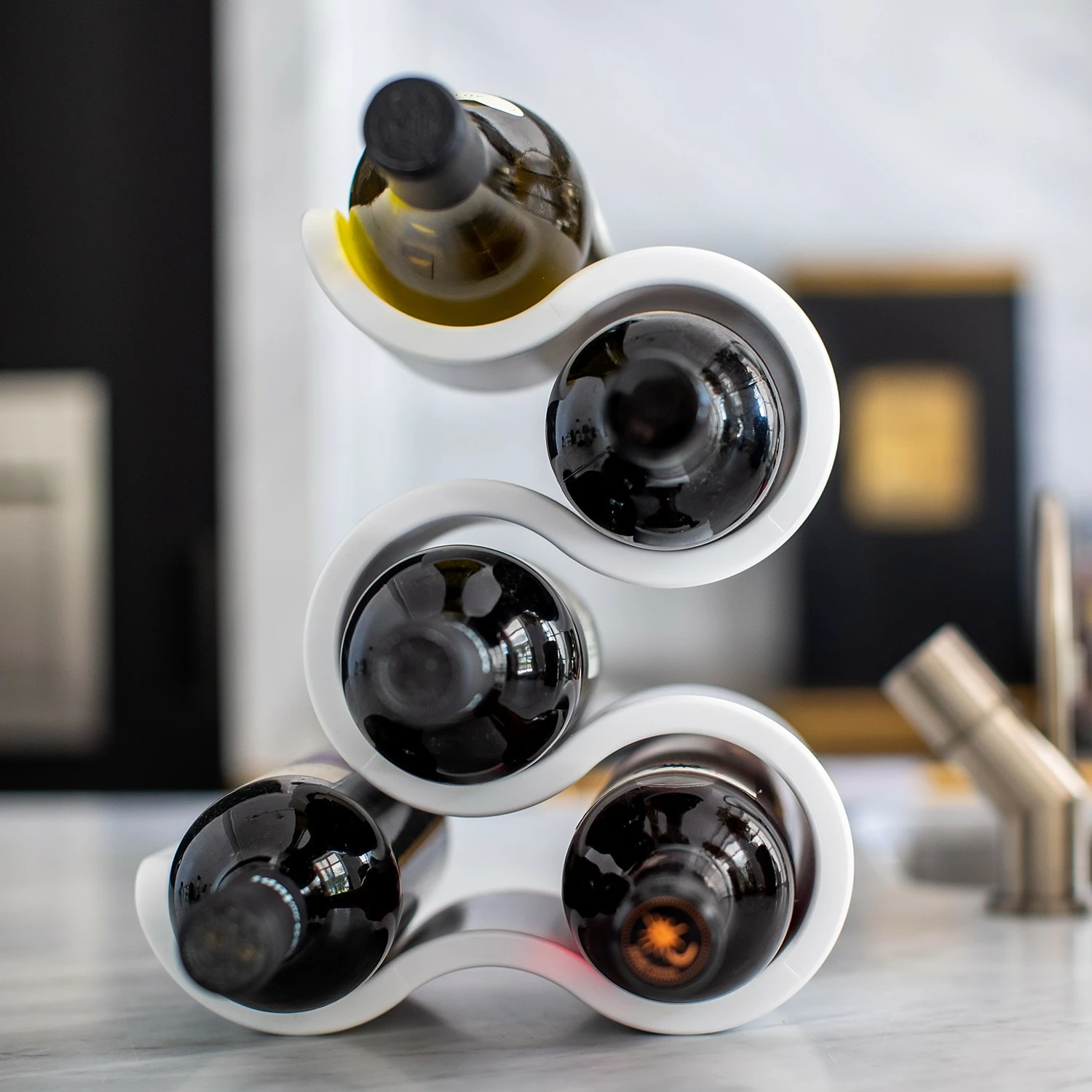 Das BOA Flaschenregal umgarnt mit jeder Menge dekorativer Verve bis zu fünf Flaschen der Wahl. Innerhalb seiner eleganten und gleichzeitig stabilen Schwünge setzt es Wein, Wasser oder Likör überaus dynamisch in Szene – und folgt hierbei stets dem praktischen Grundsatz: Stapeln ist besser als Stellen! Deshalb kann sich BOA auf der festlichen Tafel ebenso souverän präsentieren wie als platzsparende Minibar im Regal, auf dem Sideboard oder Beistelltisch.