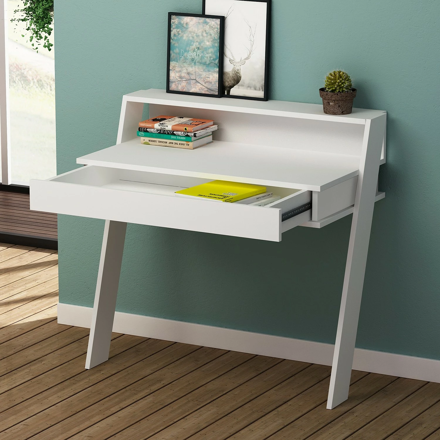 - Tischplatte, Korpus & Gestell: MDF (Mitteldichte Holzfaserplatte), melaminbeschichtet