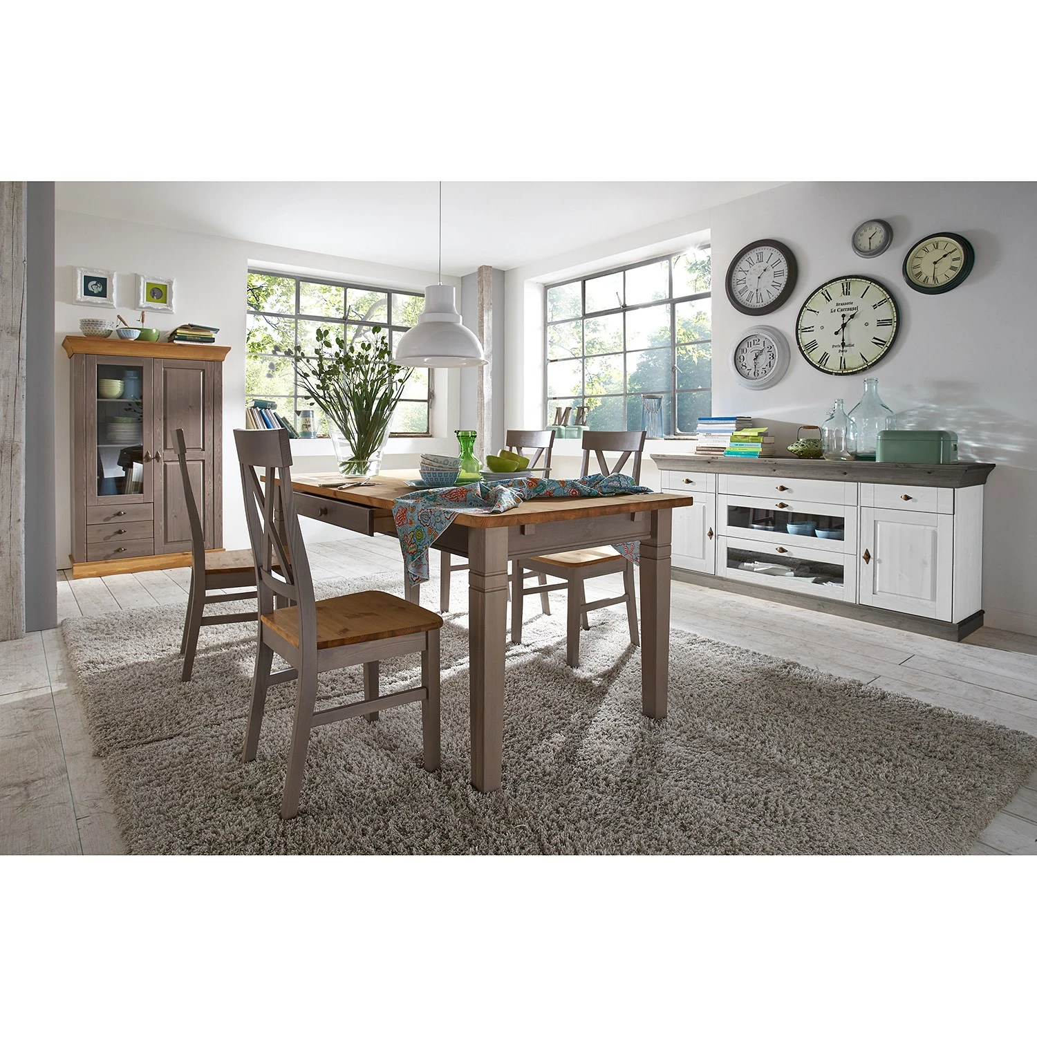 - Front & Korpus: Massivholz Kiefer, lackiert