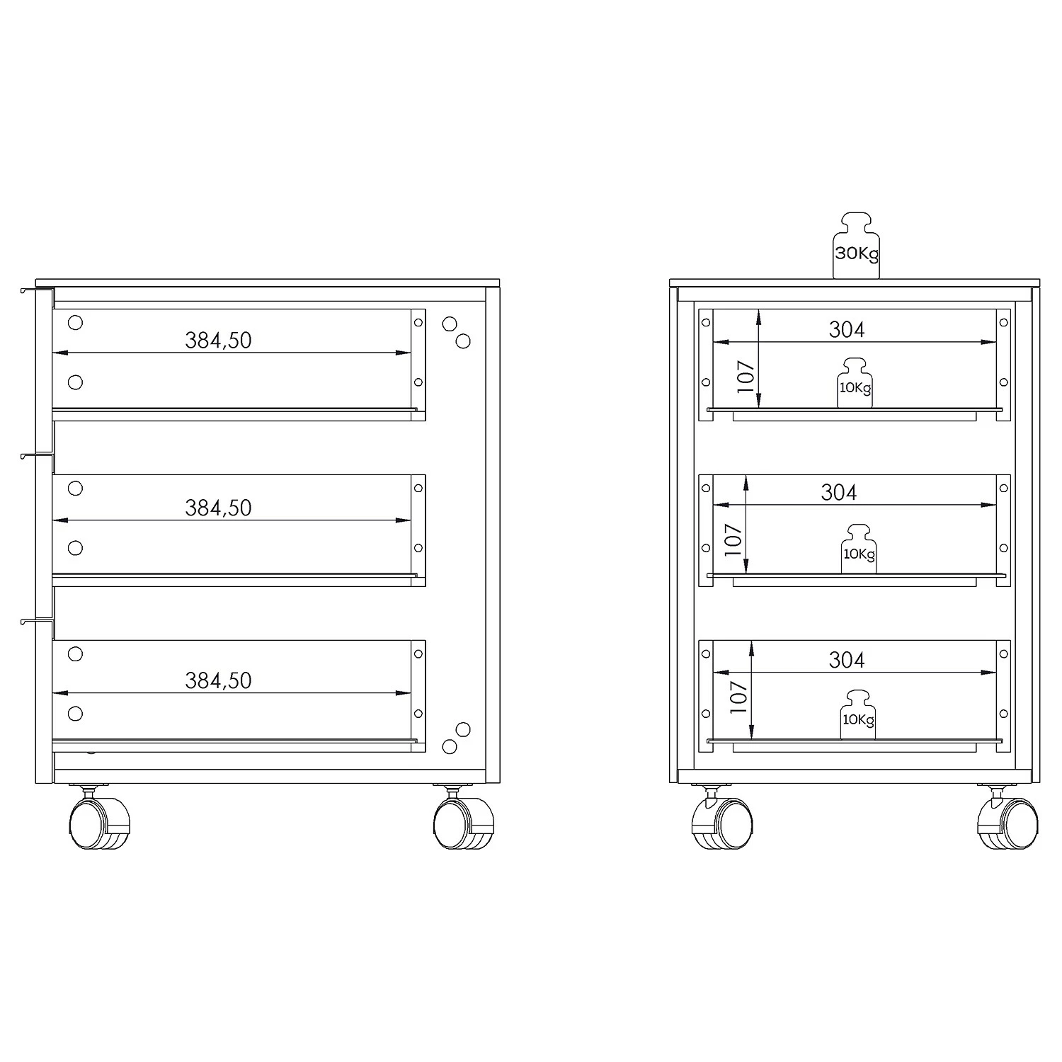- Innenmaße Schubladen: 38.45 x 30.4 x 10.7