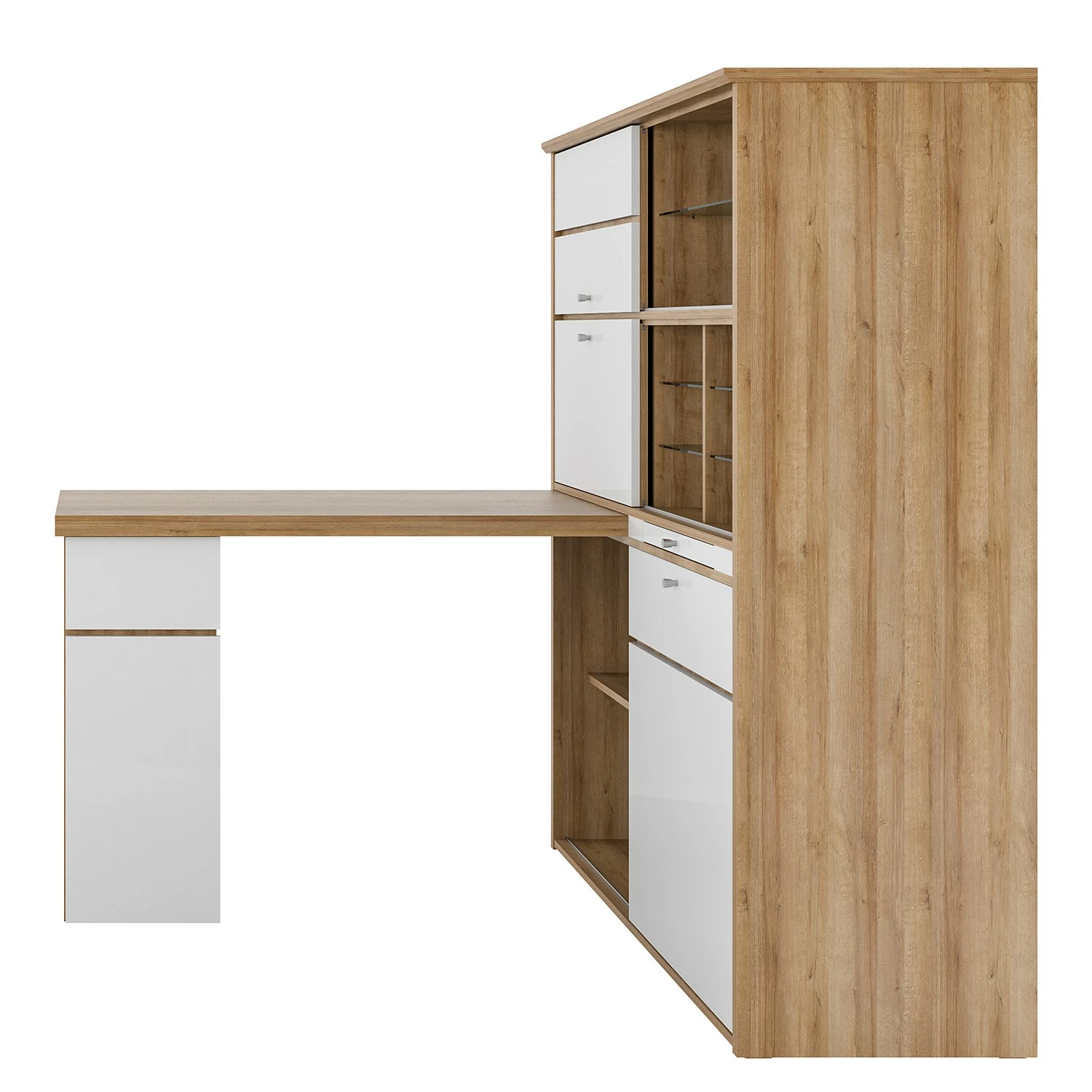 - Weitere Qualitätsmerkmale: Schreibtisch und Schublade wechselseitig montierbar