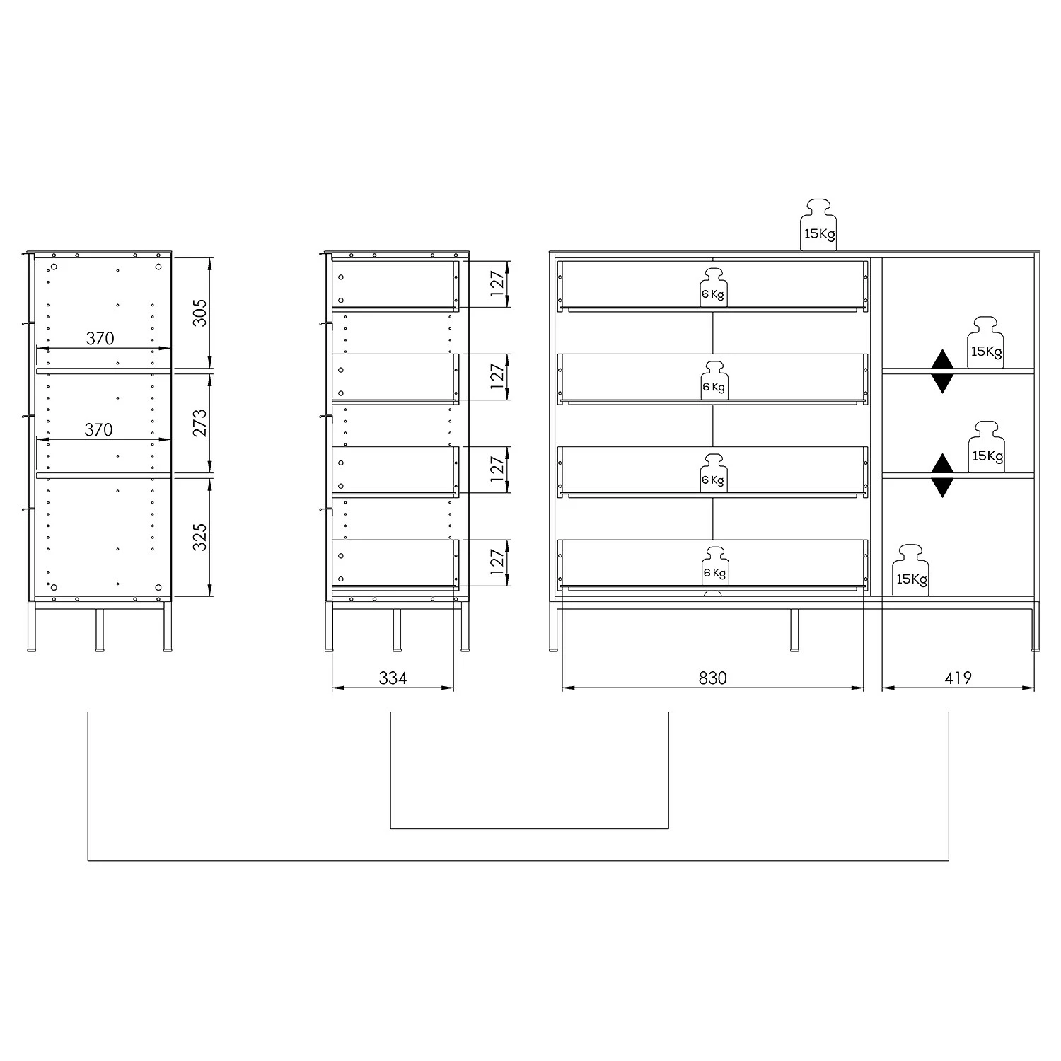 - Innenmaße Schubladen: 83 x 12,7 x 33,4 cm