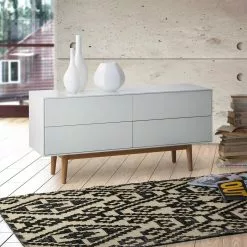 - Front & Korpus: MDF (Mitteldichte Holzfaserplatte), lackiert