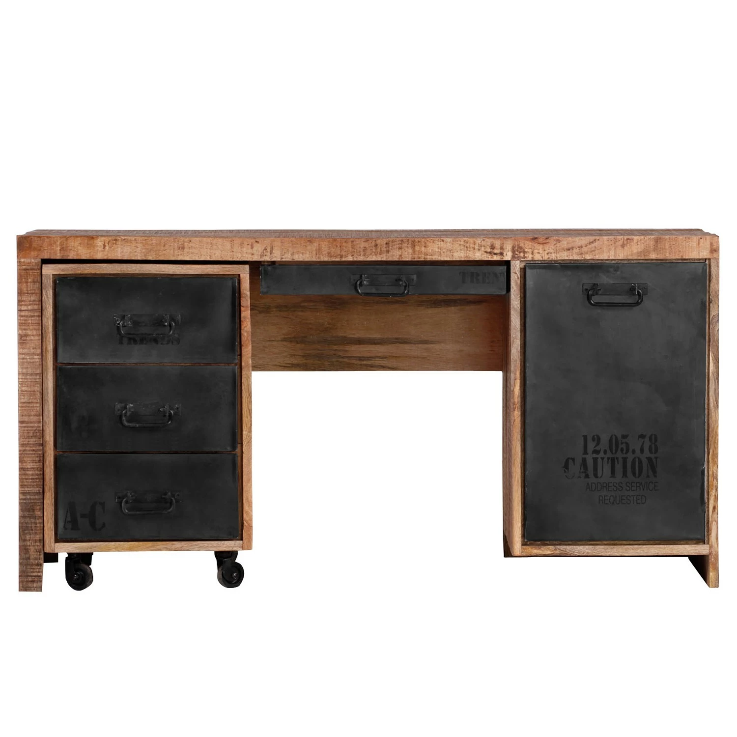 - Griffe, Schubladenfront, Tastaturauszug & Tür: Eisen, lackiert