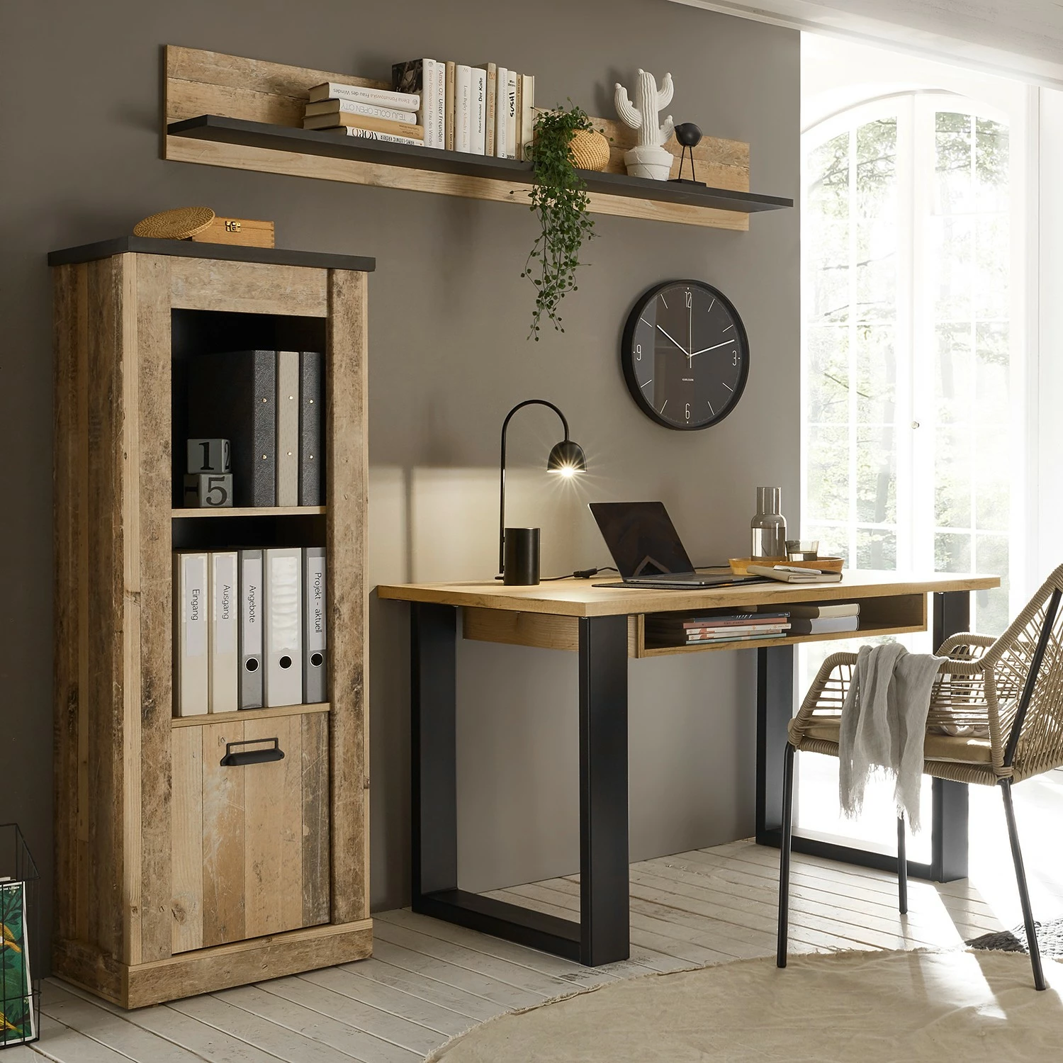 - Lieferumfang: Büroset bestehend aus 1 Regal, 1 Wandboard & 1 Schreibtisch ohne Dekoration