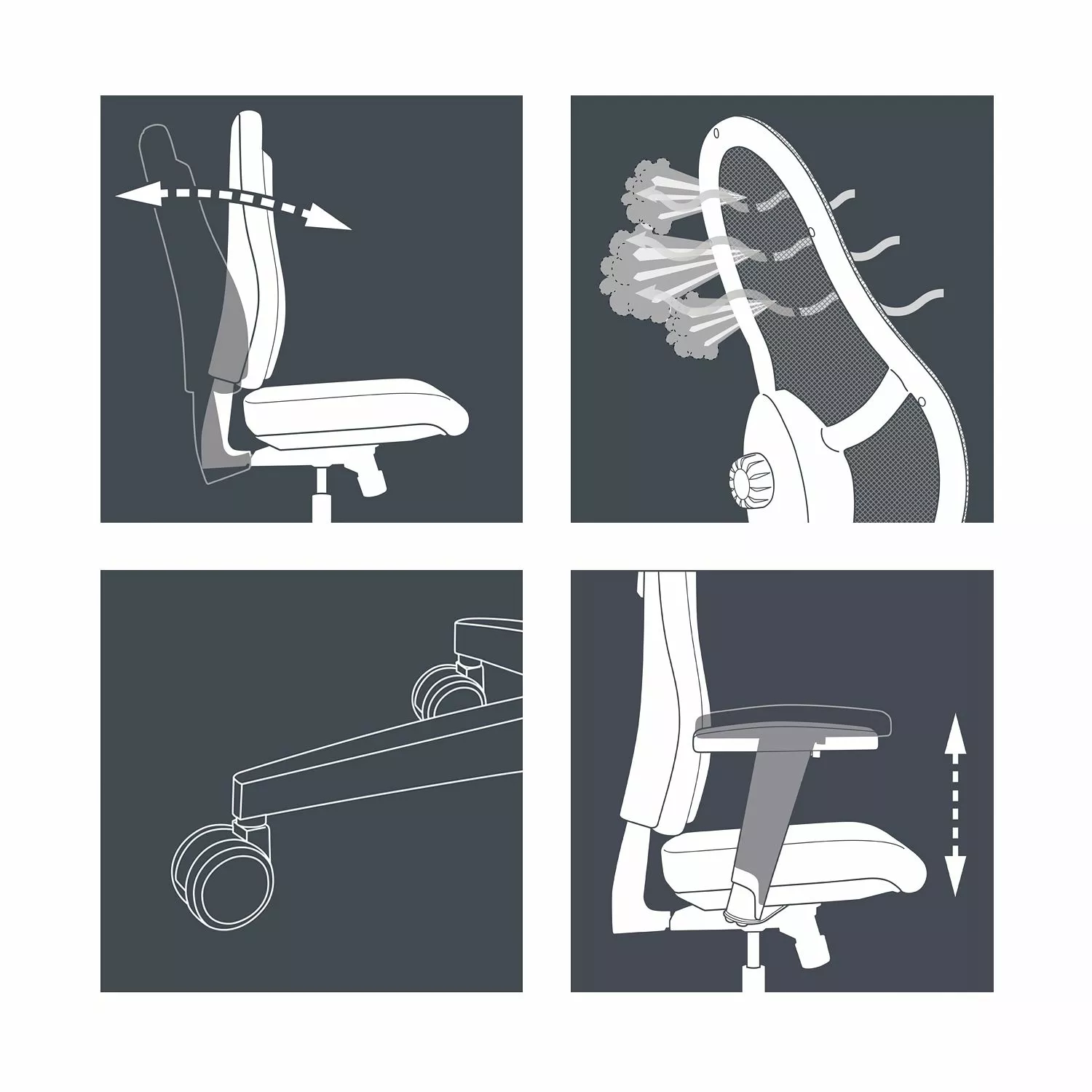 - Konturgeformte Design-Rückenlehne mit atmungsaktivem Netzbezug